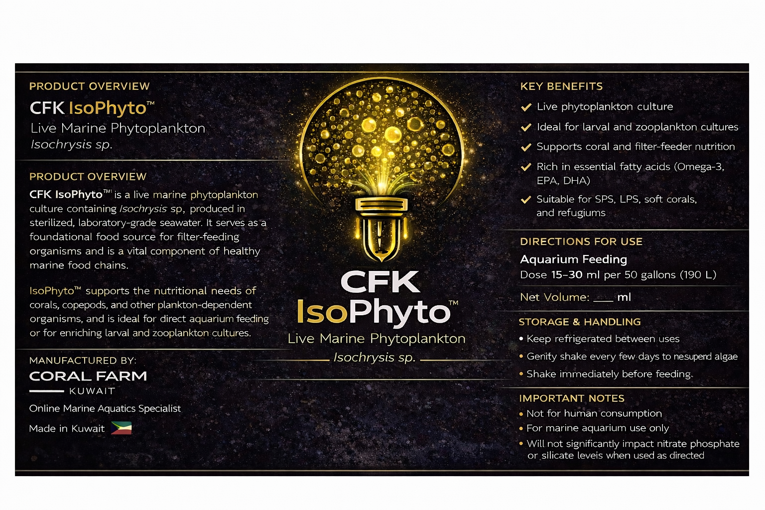 A live marine phytoplankton culture containing Isochrysis, prized for its high nutritional value and digestibility.